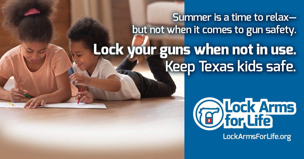 Summer is a time to relax – but not when it comes to firearm safety. Lock Arms for Life has resources to keep Texas families and communities as safe as possible when kids are at home and at greater risk for accidents. Get your free gun lock at https://lockarmsforlife.org/request-your-free-gun-locks